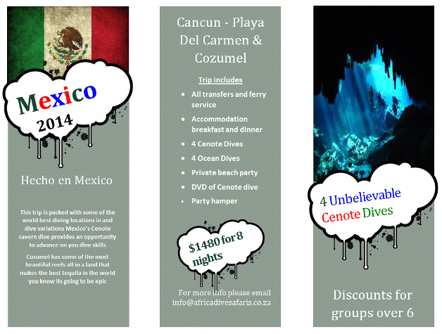 This trip is packed with some of the world best diving locations in and dive variations Mexico’s Cenote cavern dive provides an opportunity to advance on you dive skills